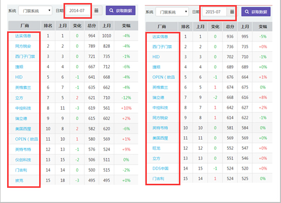 从上图门禁数据对比显示中91看片神器APP不难看出,近一年的门禁系统企业们排名变化之大,其中表现最为明显的莫属“同方锐安”了,从2014年行业排名第二,下跌至2015年行业第九;可以看出在感应卡技术,生物识别技术、物联网等新技术需求给行业带来的激烈竞争。