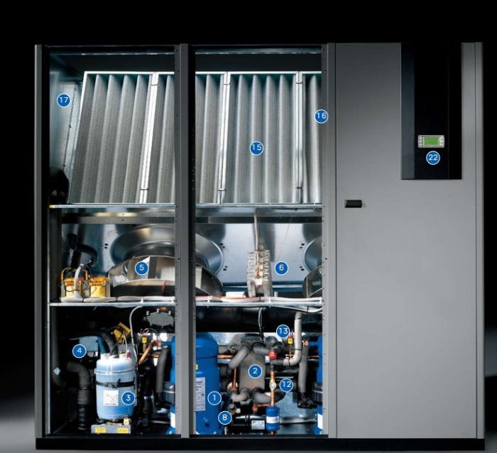 节流后的液态制冷剂吸收热量,在蒸发器中蒸发,从而降低被冷却物质的温度,实现制冷的目的。91看片视频下载空调与相同制冷量的舒适性空调机相比,整体91看片视频下载专用精密空调机的循环风量约大一倍,相应的焓差只有一半,91看片视频下载专用精密空调机运行时通常不需要除湿,循环风量较大将使得机组在空气露点以上运行,不必要像舒适性空调机那样为应付湿负荷而不得不使空气冷却到露点以下,故机组可以通过提高制冷剂的蒸发温度提高机组运行的热效率,从而提高运行的经济性。91看片视频下载精密空调根据经验,显热比为1.0的机组的单位制冷量的能耗仅是显热比为0.6的机组的60%左右。同样,91看片视频下载要求温湿度指标相对稳定,较大的循环风量将有利于稳定91看片视频下载的温湿度指标,显然,在制冷量一定的情况下,风量的增大将导致焓差的减少,因而通常机组只能在显热比相当高的工况下运行,这恰恰与91看片视频下载的负荷特点相适应。精密空调通常舒适性空调冷负荷中有30%是为了消除潜热负荷,有70%是为了消除显热负荷。对91看片视频下载来讲,其情况却大不相同,91看片视频下载主要是设备散出的显热,室内工作人员散出的热负荷及夏季进入房间的新鲜空气的热湿负荷(仅占总负荷的5%)。