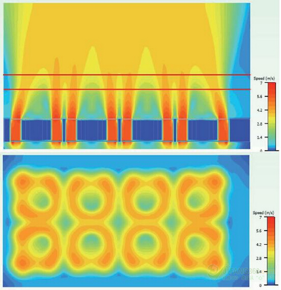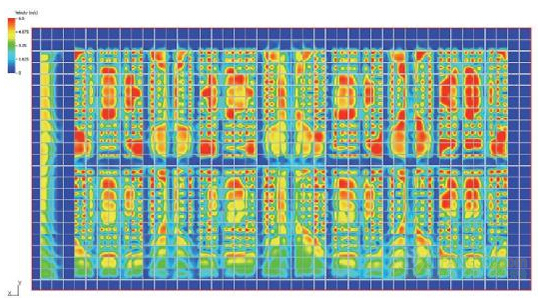 在创建一个组件,使每个插槽的气流均匀统一之前,91看片神器APP决定看看仿真模拟空气流量,而不考虑漩涡。91看片神器APP观察到在远离风扇75毫米的一定距离,速度变化仍然非常重要(图8)。